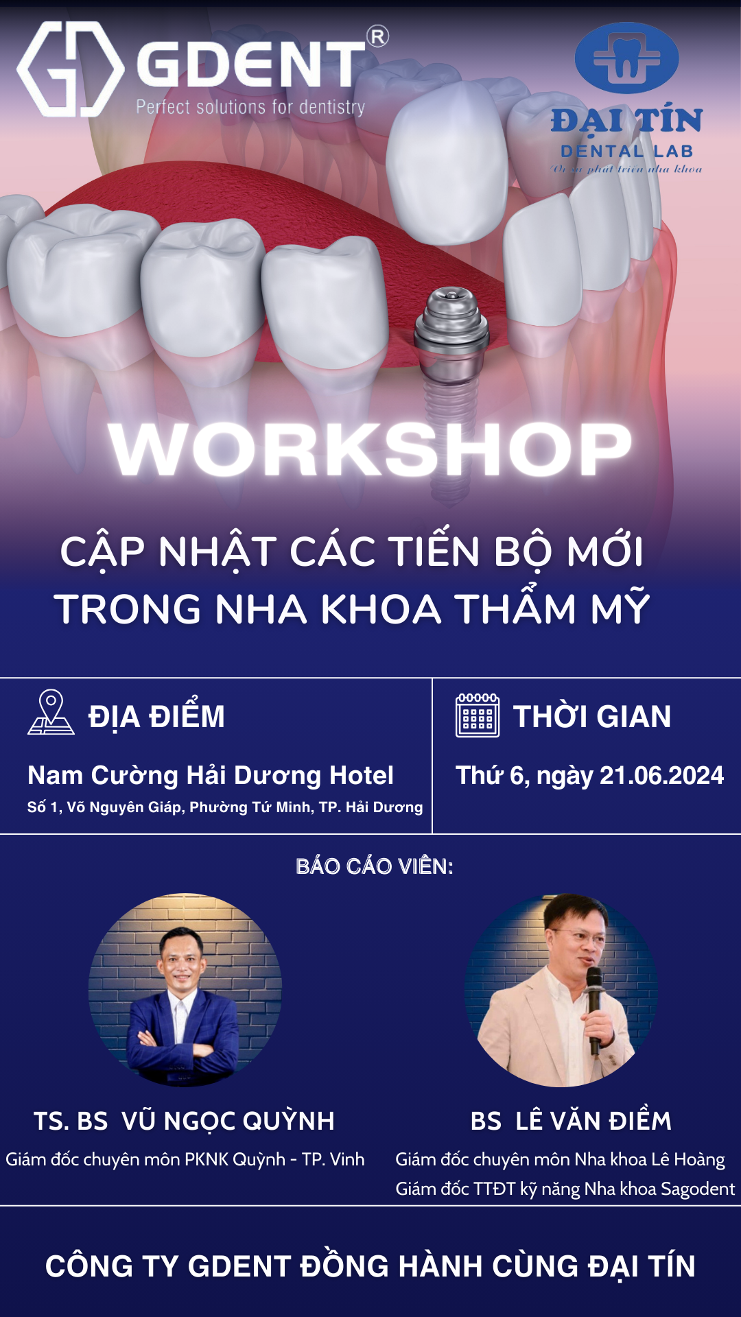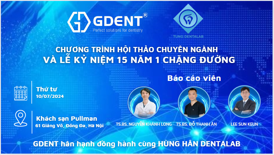 GDENT hân hạnh kính mời Quý Bác Sĩ tham dự hội thảo chuyên đề "Cập Nhật Các Tiến Bộ Mới Trong Nha Khoa Thẩm Mỹ". Hội thảo nhằm giới thiệu những công nghệ và phương pháp tiên tiến, giúp nâng cao hiệu quả điều trị và trải nghiệm của bệnh nhân.